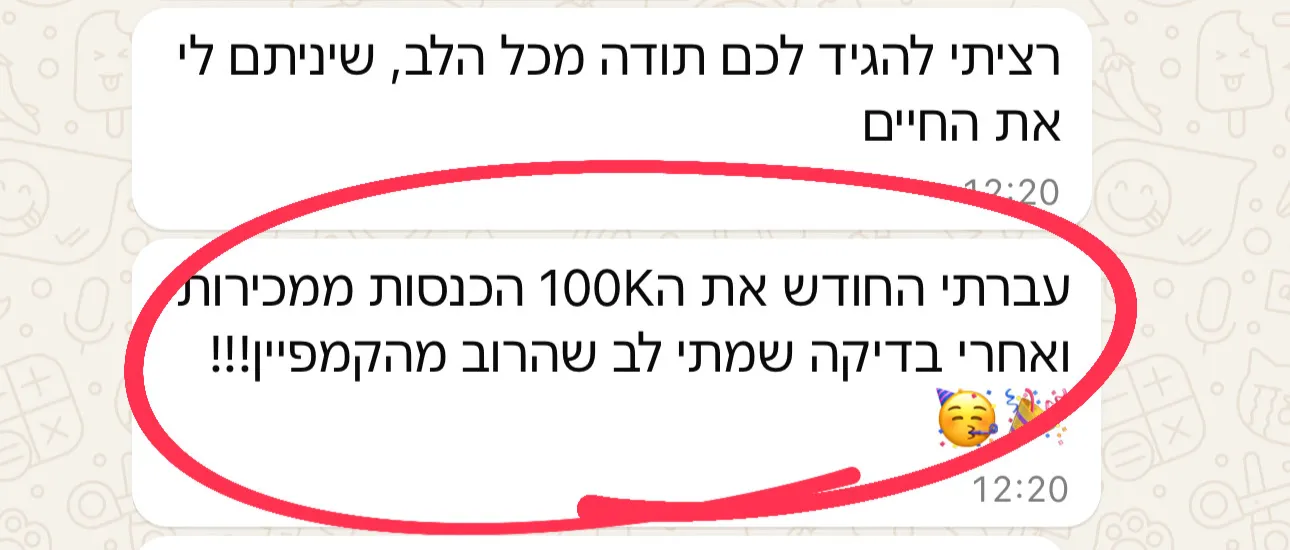 30K בהכנסות תוך שבועיים על 2,700 תקציב שיווק