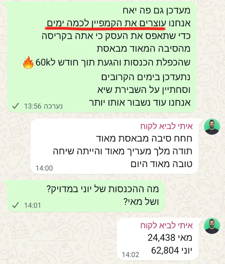 עשינו את זה עד היום עם מעל 15 בעלי עסקים (ויש כאלה שגם עברו את המיליון 😉)